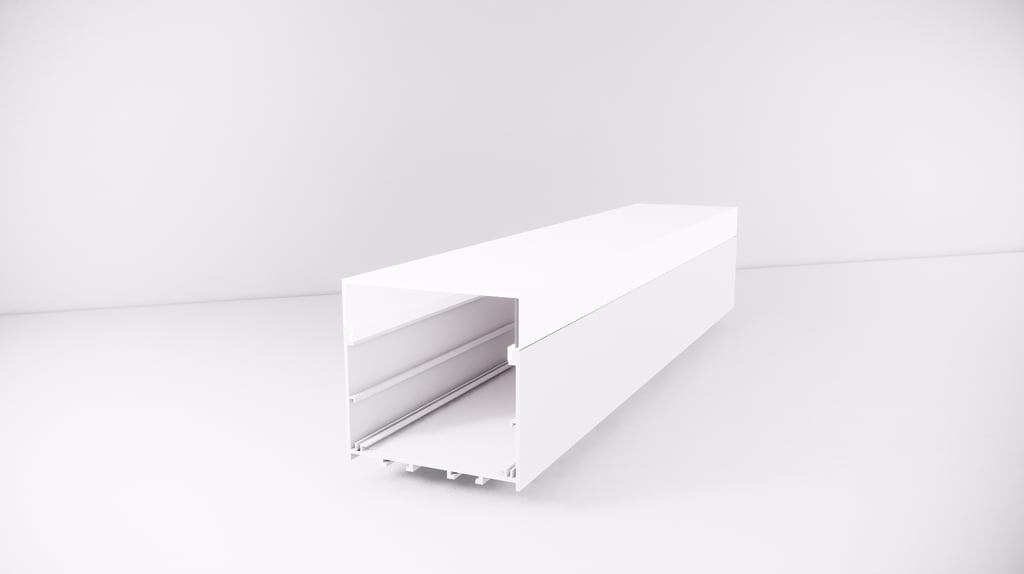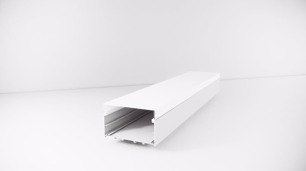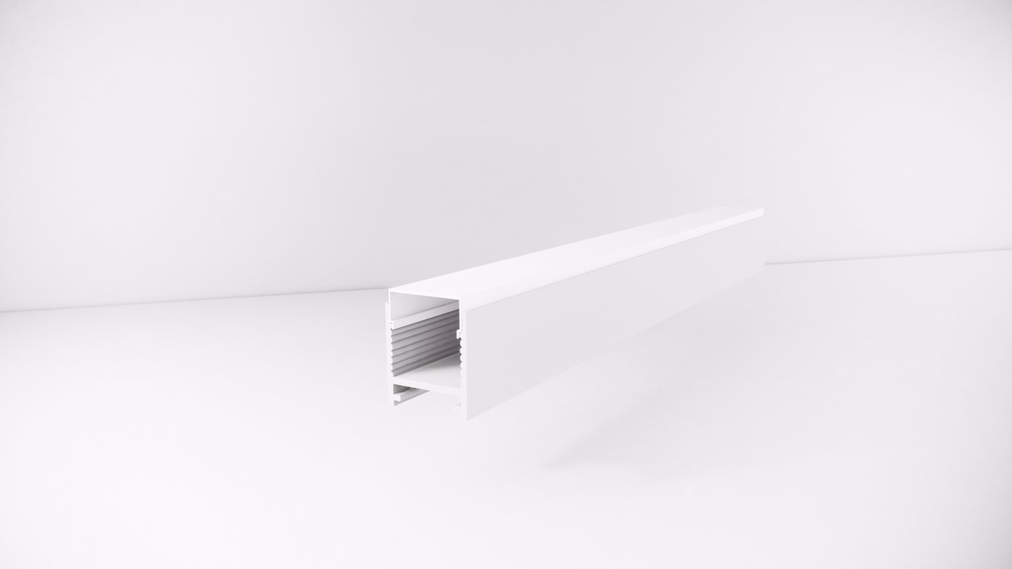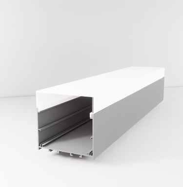 Seu formato imponente é ideal para projetos que exigem uma iluminação marcante, como lojas, academias, espaços corporativos e ambientes residenciais modernos. Com possibilidade de uso com lente recuada, o perfil permite uma iluminação confortável aos olhos e com grande impacto estético.