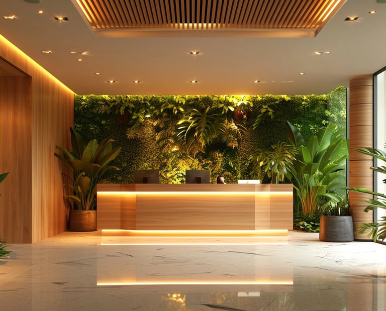 Ambientes corporativos que alinham estilo e funcionalidade através da iluminação e marcenaria.
