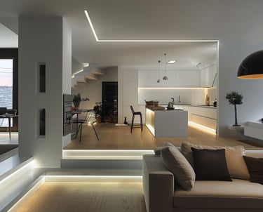 "Explore novos horizontes de design com a iluminação LED para sancas, adicionando um toque de modernidade e elegância aos seus espaços. Deixe-se envolver pela atmosfera acolhedora e contemporânea criada pelos LED em sancas, tornando cada ambiente um verdadeiro refúgio de conforto e estilo. Descubra o poder da luz transformadora com nossas soluções de iluminação para sancas, onde a sofisticação encontra a harmonia